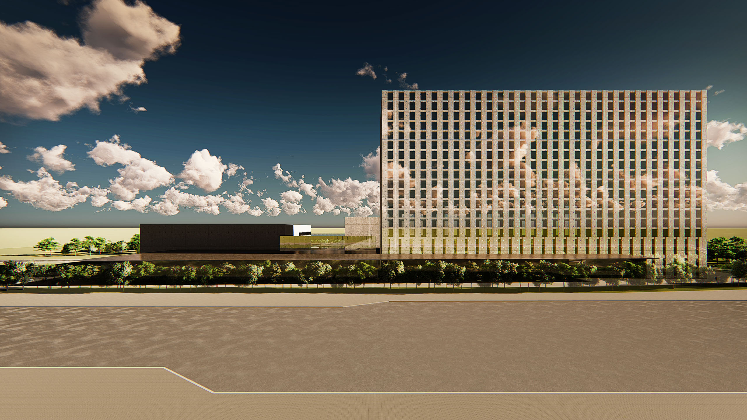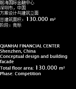 前海国际金融中心 深圳市,中国 方案设计与建筑立面 总建筑面积:130.000 m² 阶段:竞标 QIANHAI FINANCIAL CENTER Shenzhen, China Conceptual design and building facade Total floor area: 130.000 m² Phase: Competition