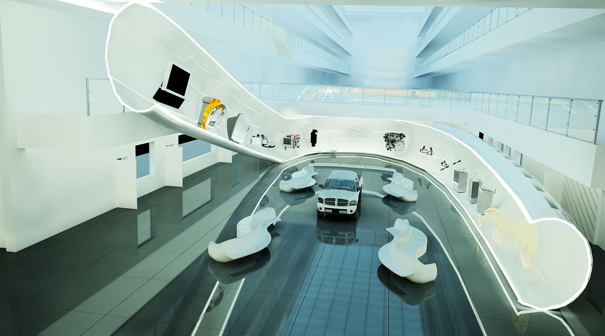 研发大楼,大厅及展示区域 北京福田汽车有限公司 北京,中国 室内设计 总建筑面积:250m2 阶段:设计阶段 Research&Development Building,Lobby and Display Area Beiqi Foton Motor Co., Ltd. Beijing, P.R. China Interior design Total floor area:250 m² Phase: Design Stage